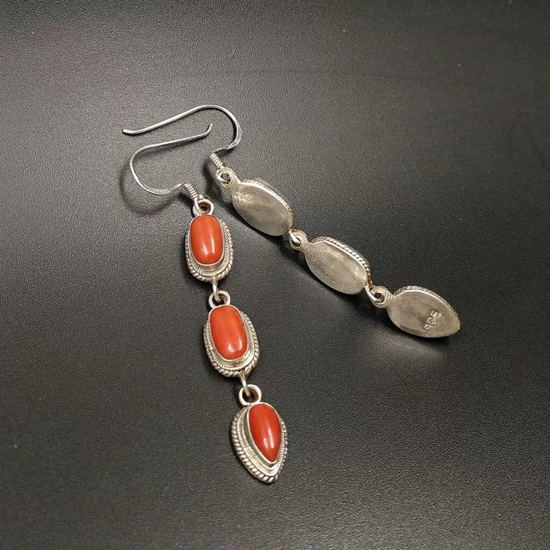 Niche Nepalese Style Handmade Jewelry Coral Stone Fashion Women's Tibetan Style Personality Creative Retro Ethnic Style Earrings
