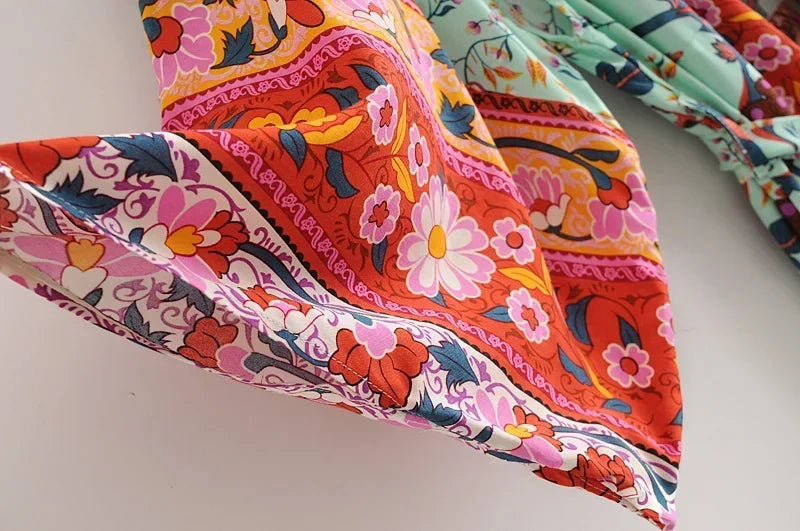 Happie Queens Women Green Peacock Print Bat Sleeve Beach Bohemian Kimono Robe Ladies V Neck Boho Bikini Cover-ups
